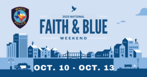 Faith & Blue Weekend in Waco will take place October 10-11, 2025. This national initiative fosters meaningful connections between law enforcement and the community through local faith-based organizations. Waco Police will participate in events throughout the weekend. We invite all residents to participate and help strengthen our community bonds.