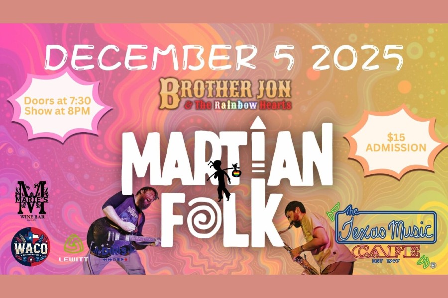 Join us for an electrifying night of Central Texas music as Martian Folk and Brother Jon & The Rainbow Hearts take the stage at the legendary Texas Music Cafe!