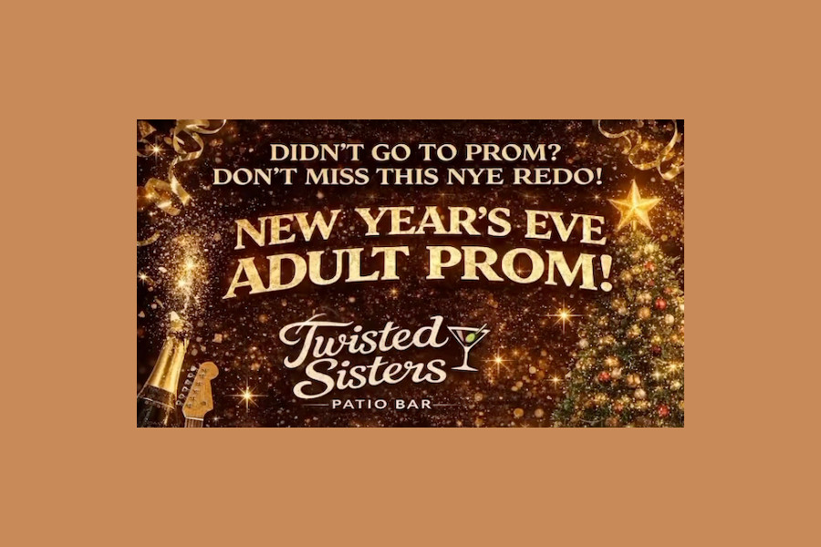 Didn’t get to go to prom? Or loved it so much you want a redo? Here’s your chance to (re)discover the magic at Twisted Sisters Patio Bar’s New Year’s Eve Adult Prom, featuring music by the Collin James Band.