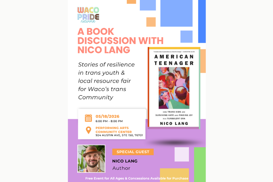 Come meet nonbinary, awarding-winning journalist Nico Lang and discuss their book: “American Teenager: How Trans Kids are Surviving Hate and Finding Joy in a Turbulent Era.” You’ll hear about Nico’s experience traveling the US and documenting the lives of transgender, nonbinary and genderfluid teens and their families and have an opportunity to ask questions. Waco Pride…