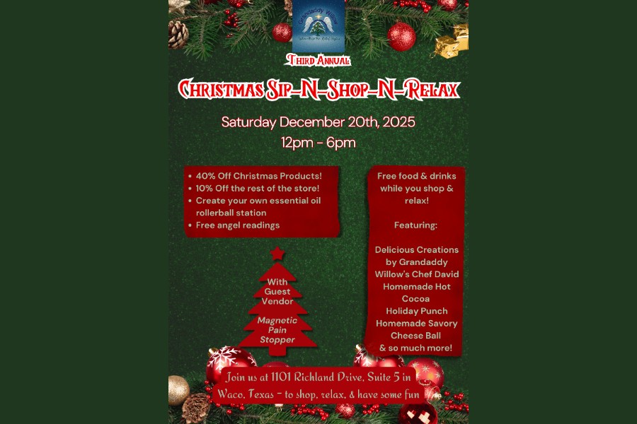 Grandaddy Willow, Waco’s beloved holistic wellness boutique, invites the community to its Third Annual Christmas Sip-N-Shop-N-Relax on Saturday, December 20th, from 12pm to 6pm. This festive open-house event offers a warm, welcoming space for holiday shopping, relaxation, and community connection. Visitors will enjoy 40% off all Christmas products, 10% off the rest of the…